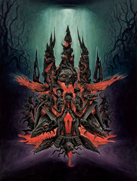 I was contacted by Amanda and Brian from the band, who were looking to add some different kinds of artwork to their 2018 -19 tour. We collaborated to find a design that had within it certain tropes of my album cover aesthetic, which could set the band members as characters within it.